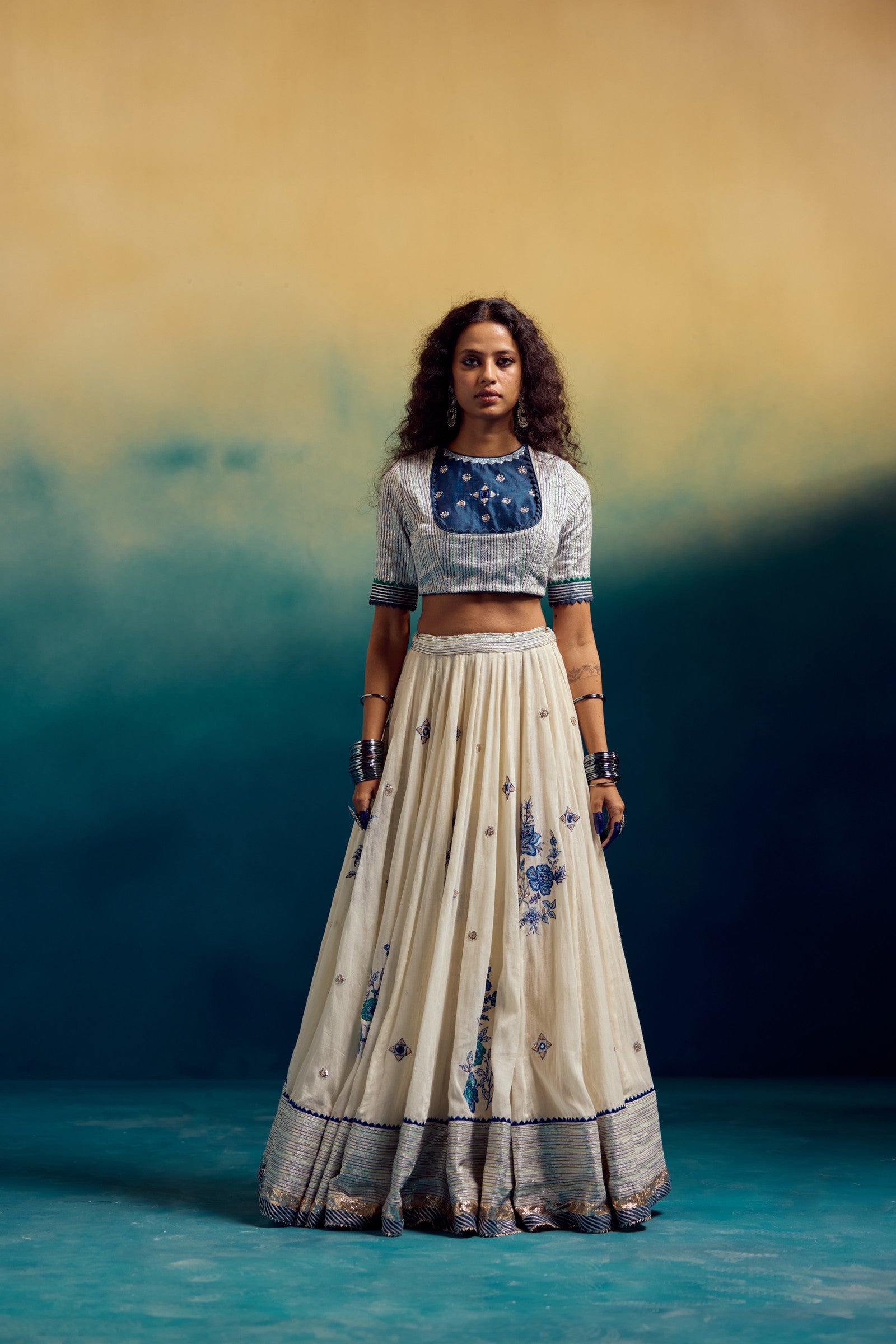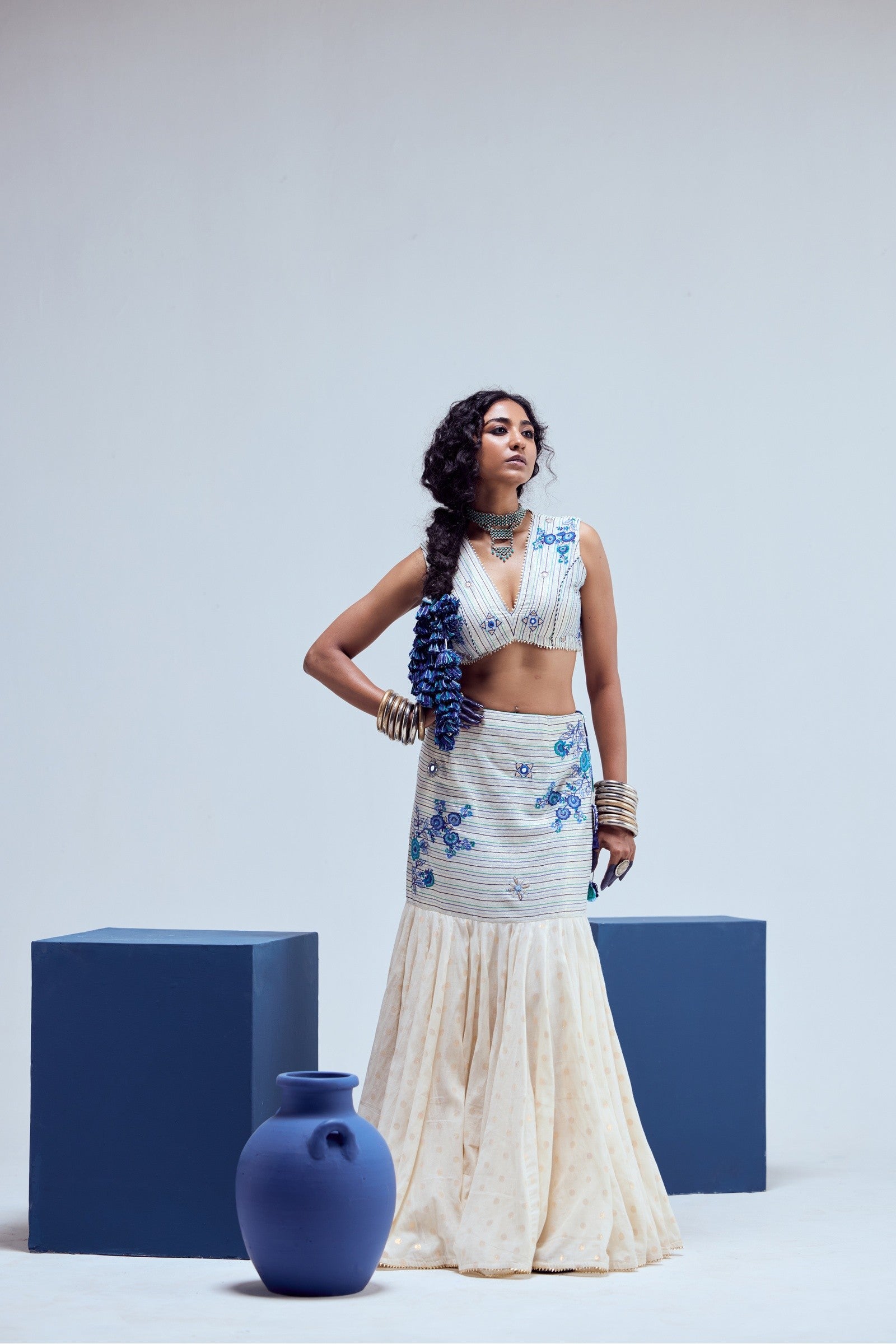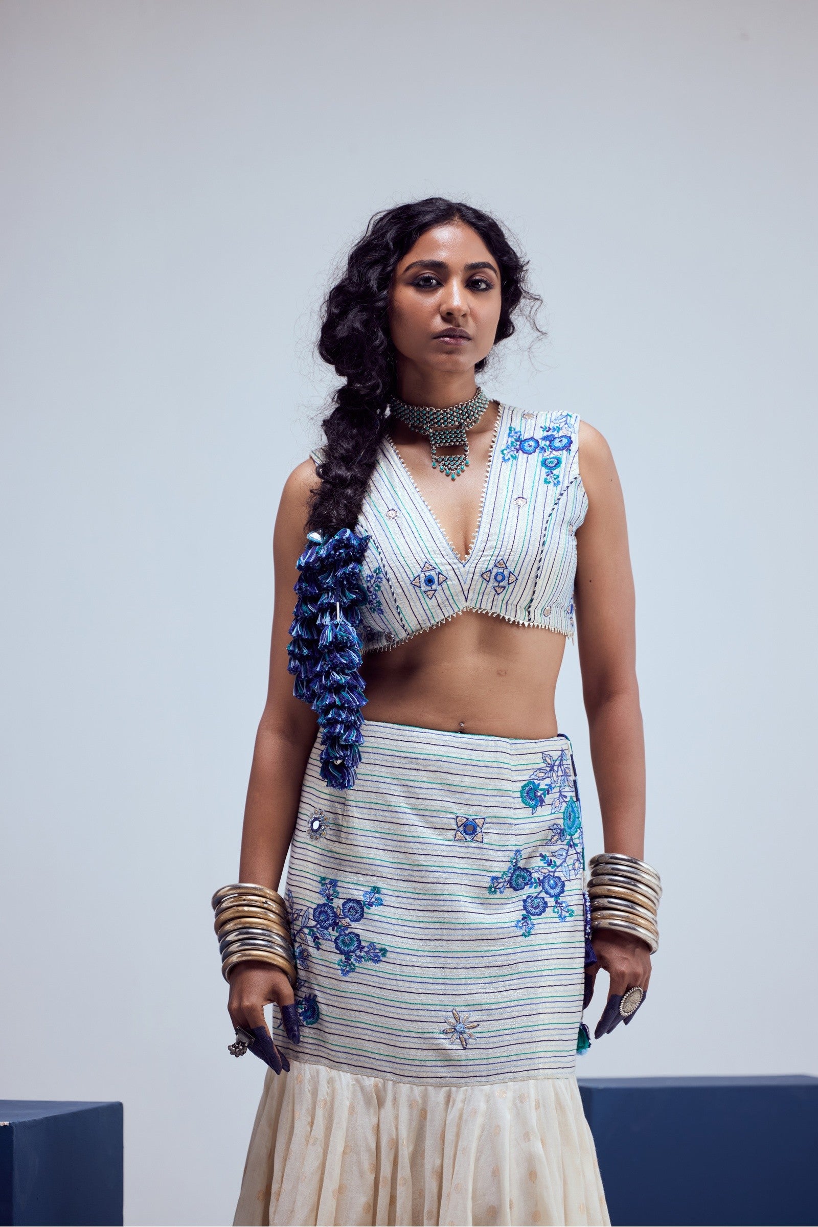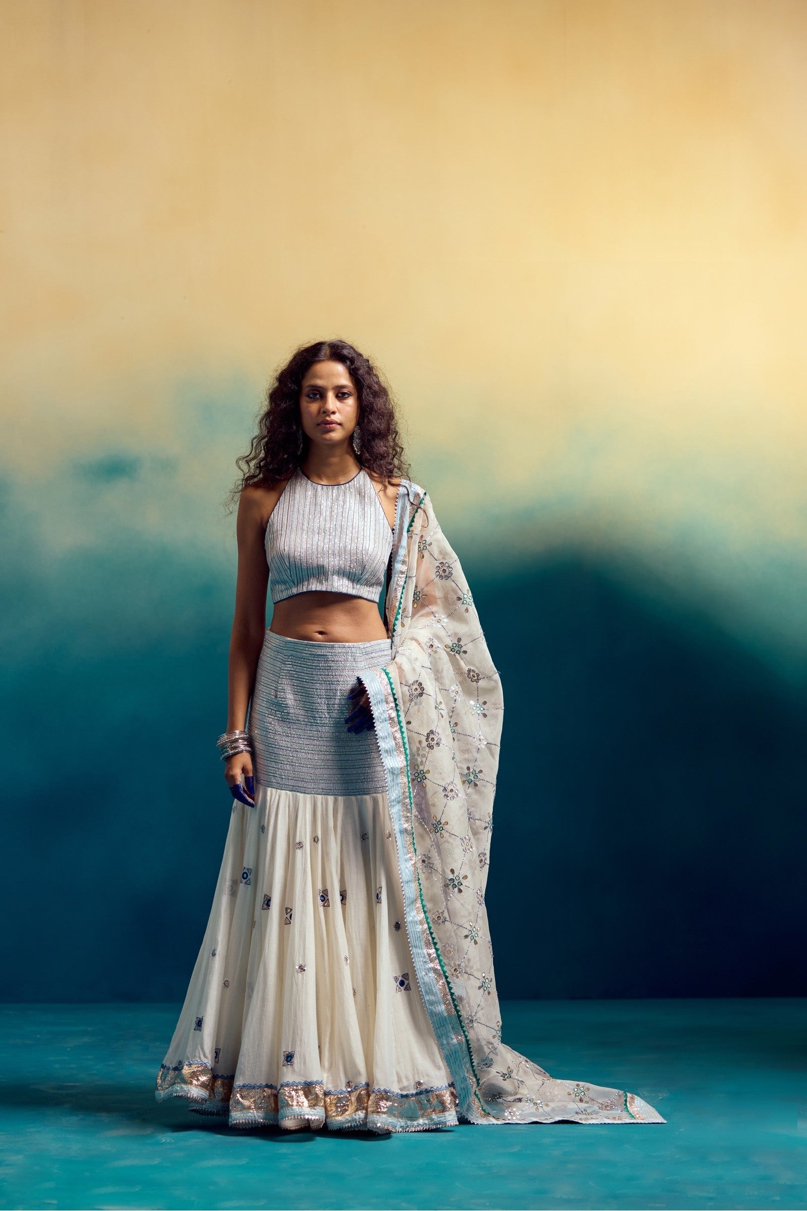 HALTER BLOUSE WITH HALF KALI LEHNGHA