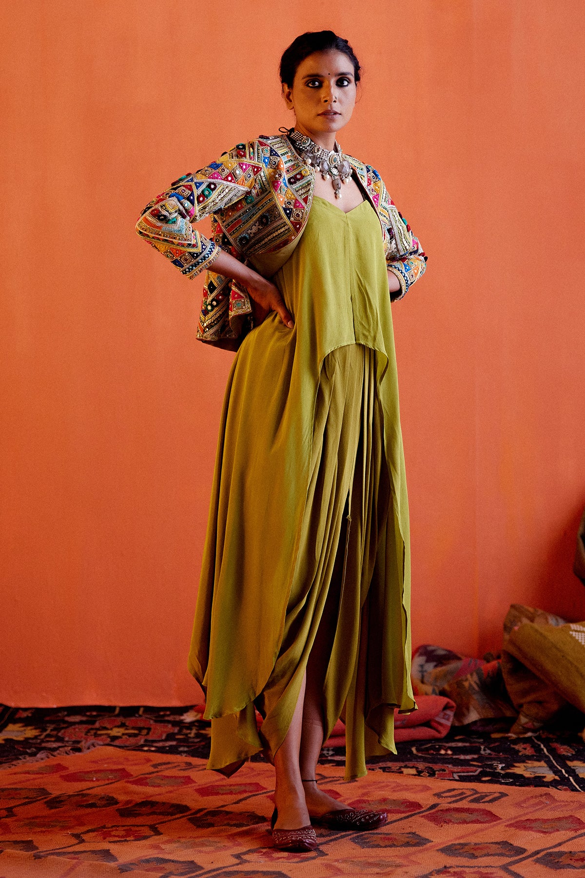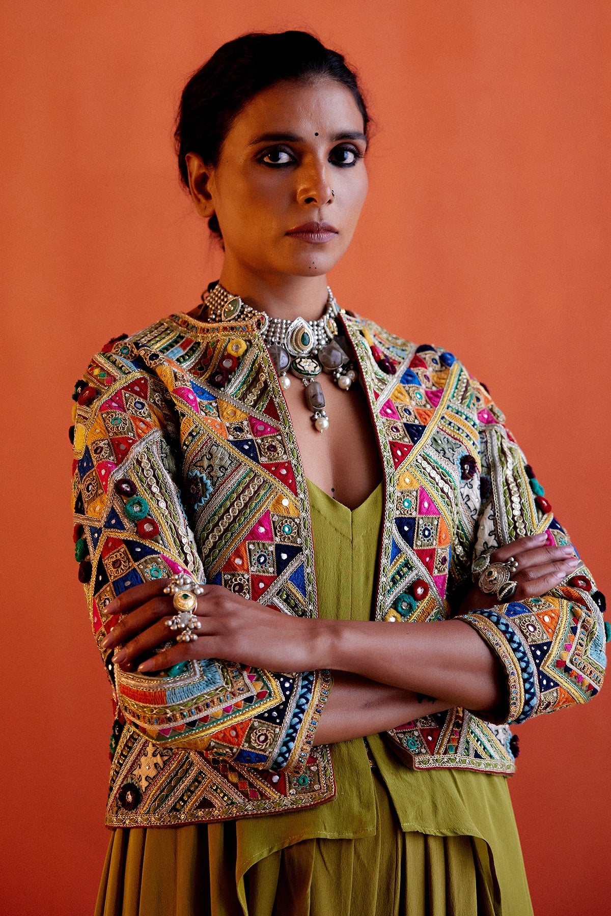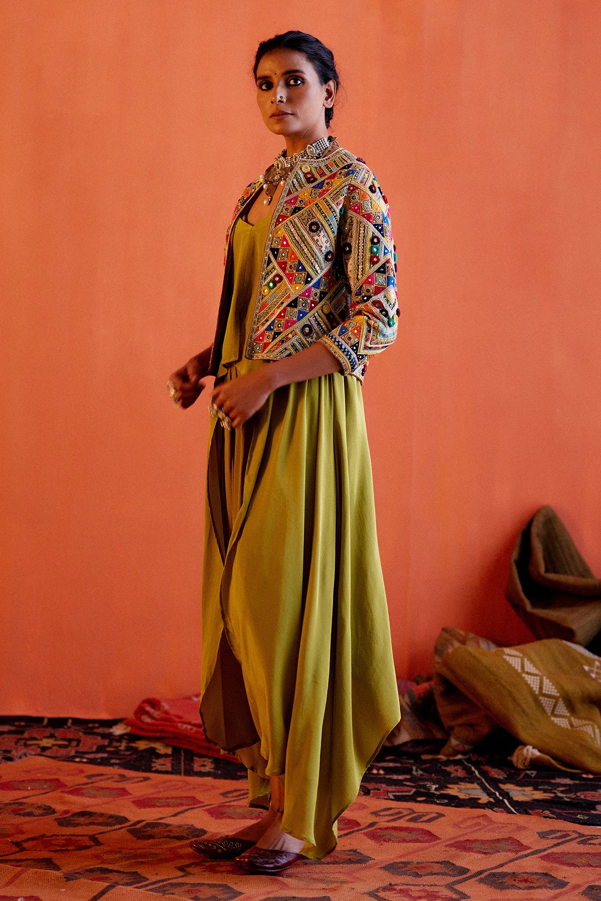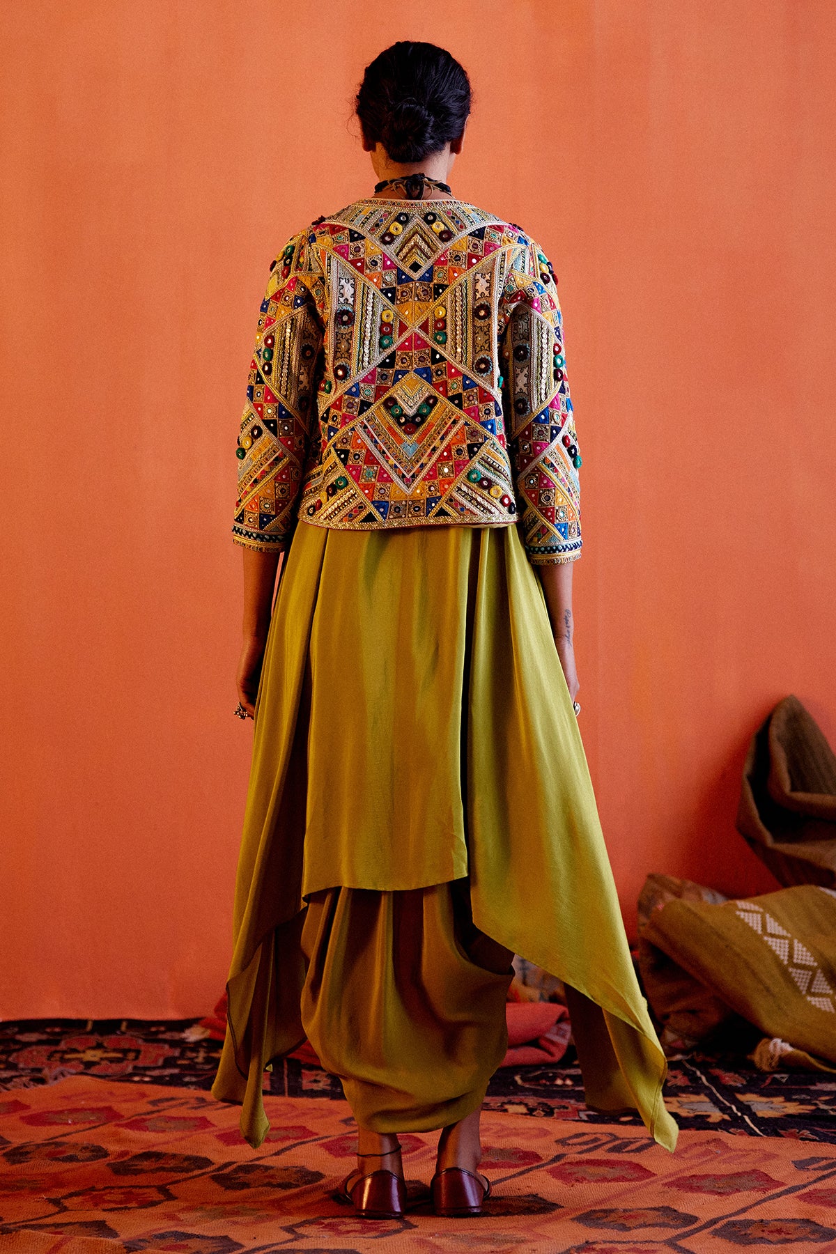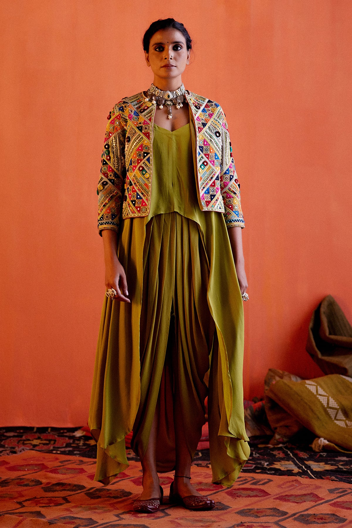 Fabric : Afzal Jacket And Dhoti And Blouse - Chanderi And Crepe Dhoti
