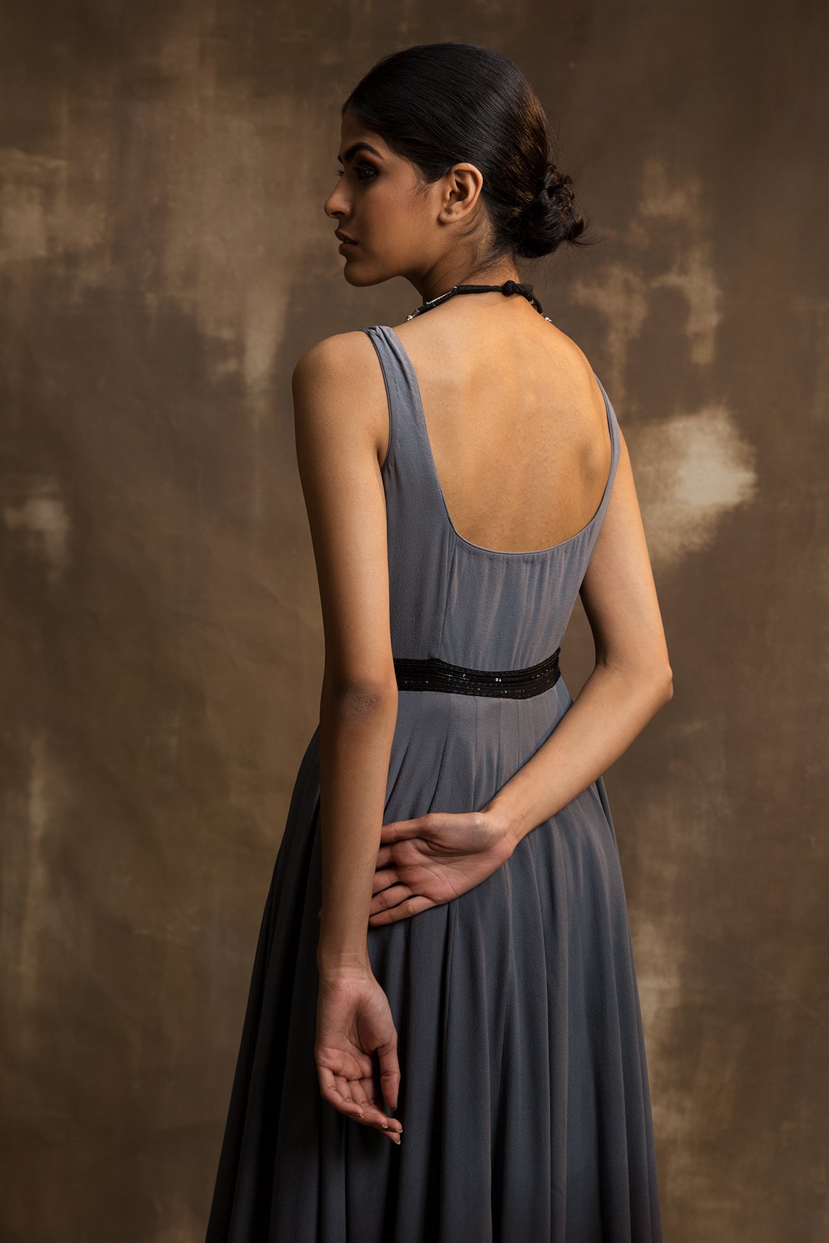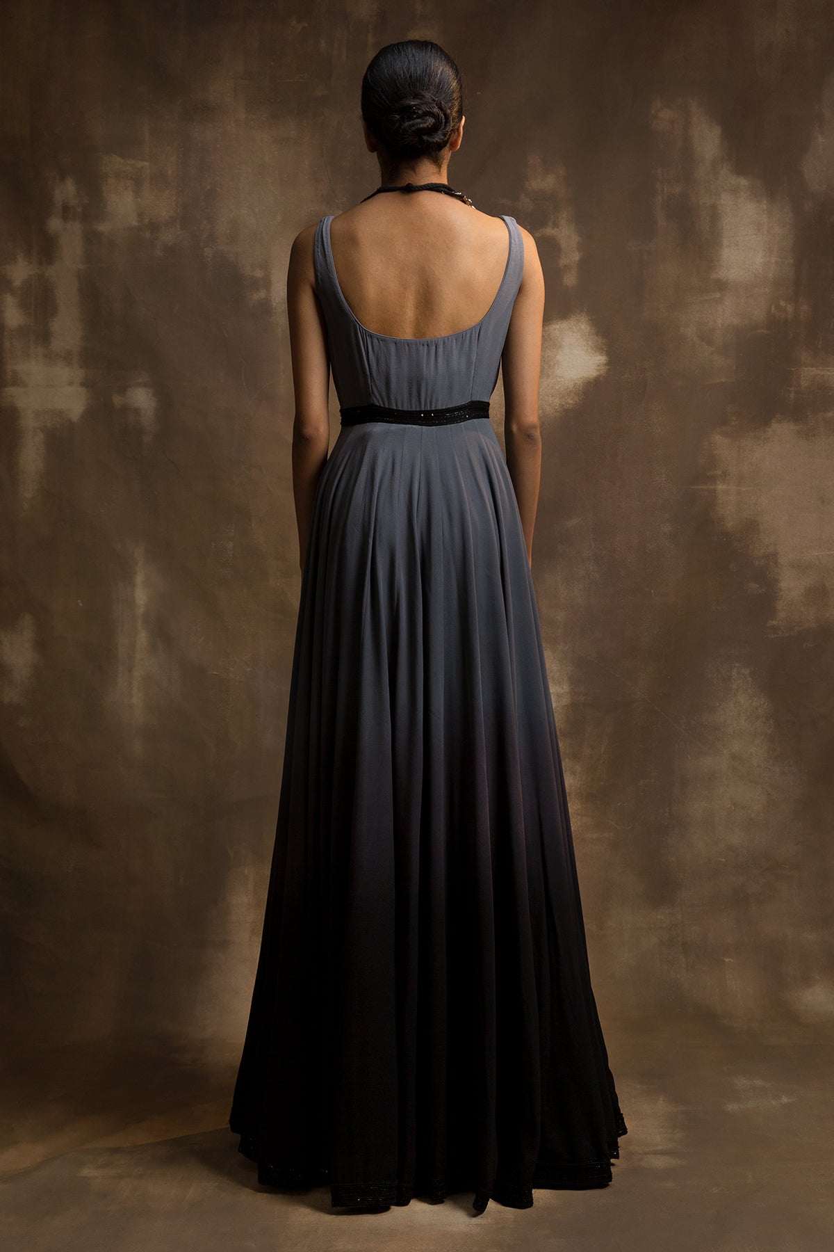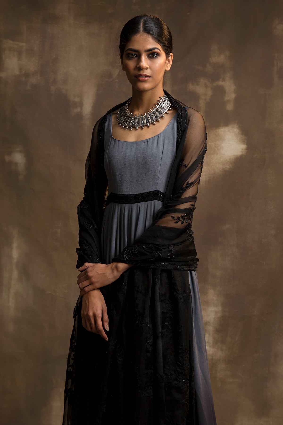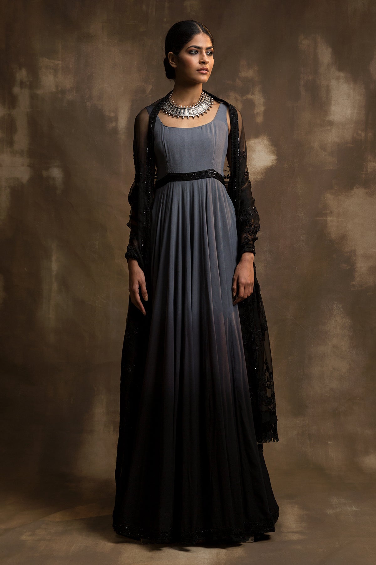 Grey Black Ombre Anarkali with Dupatta in Monotone