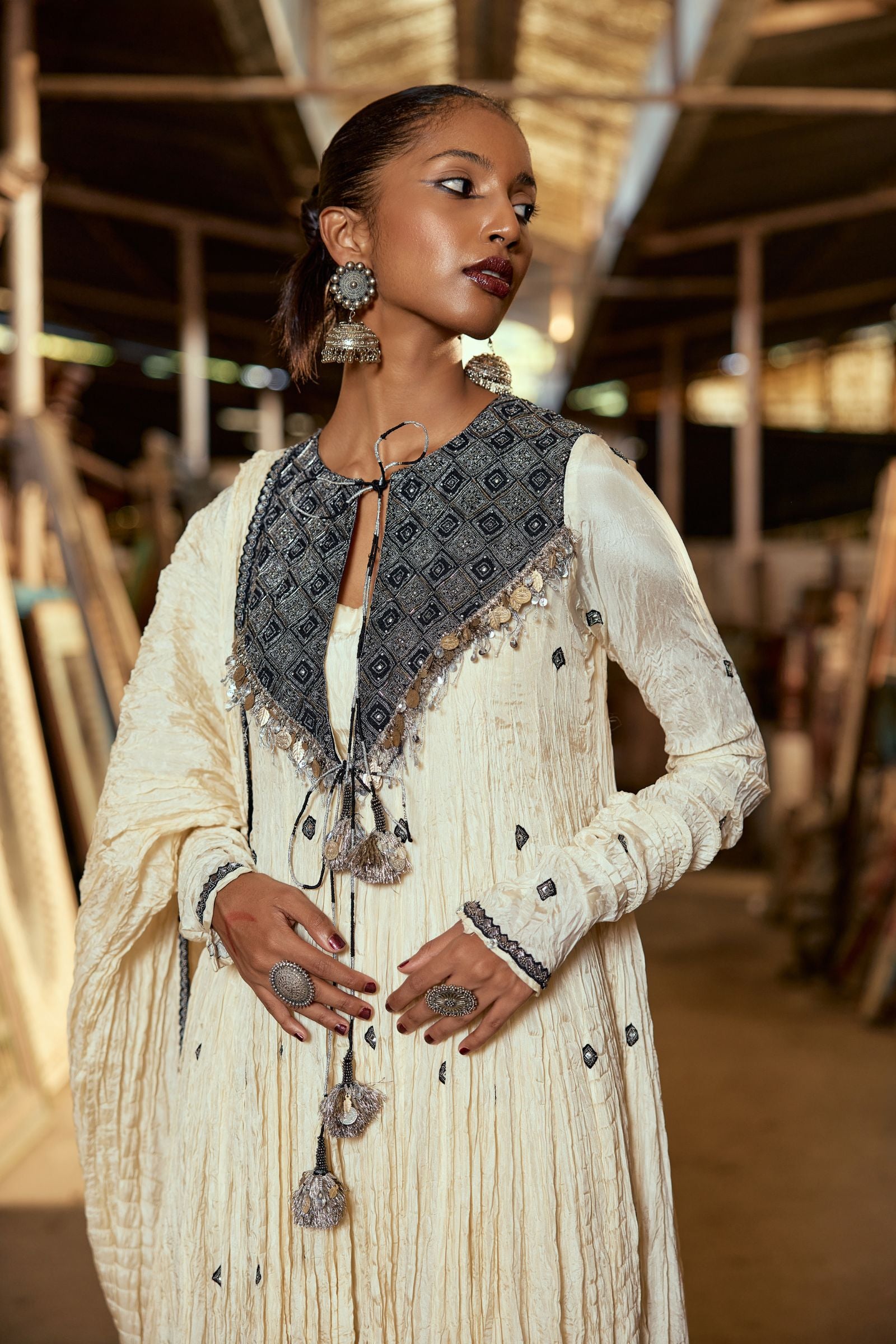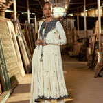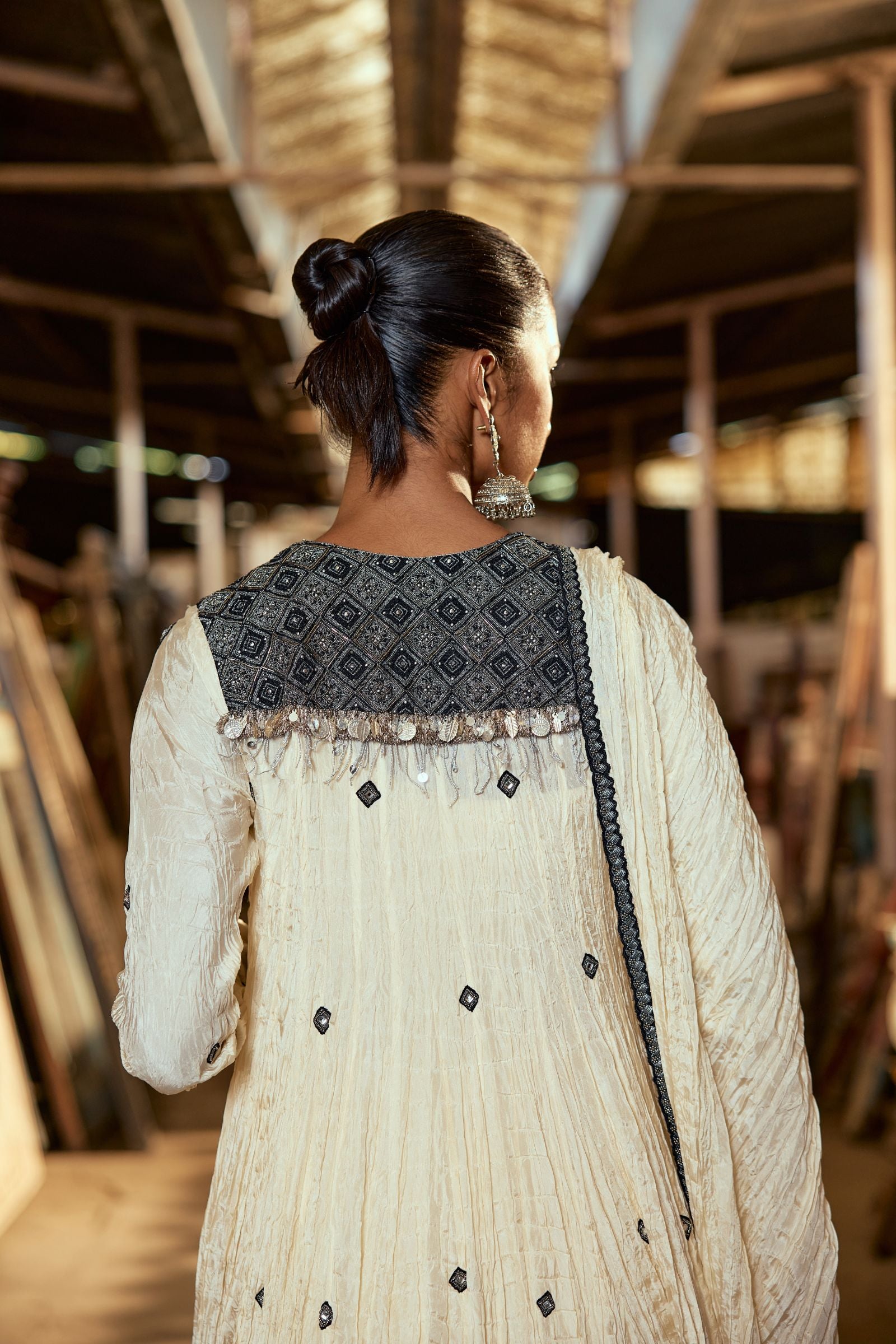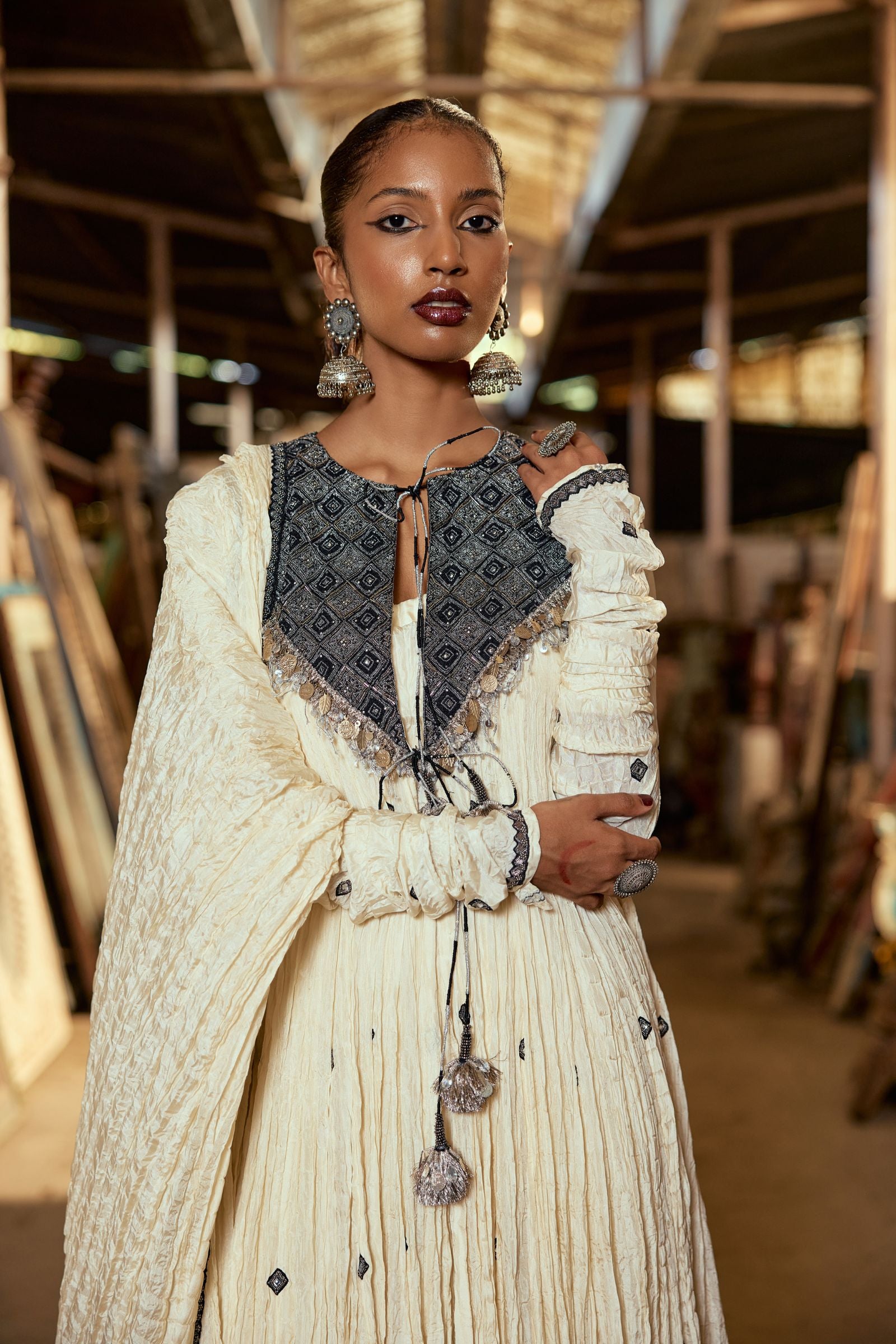 BEIGE CRUSH OPEN ANARKALI WITH KURTA AND CHURIDAR