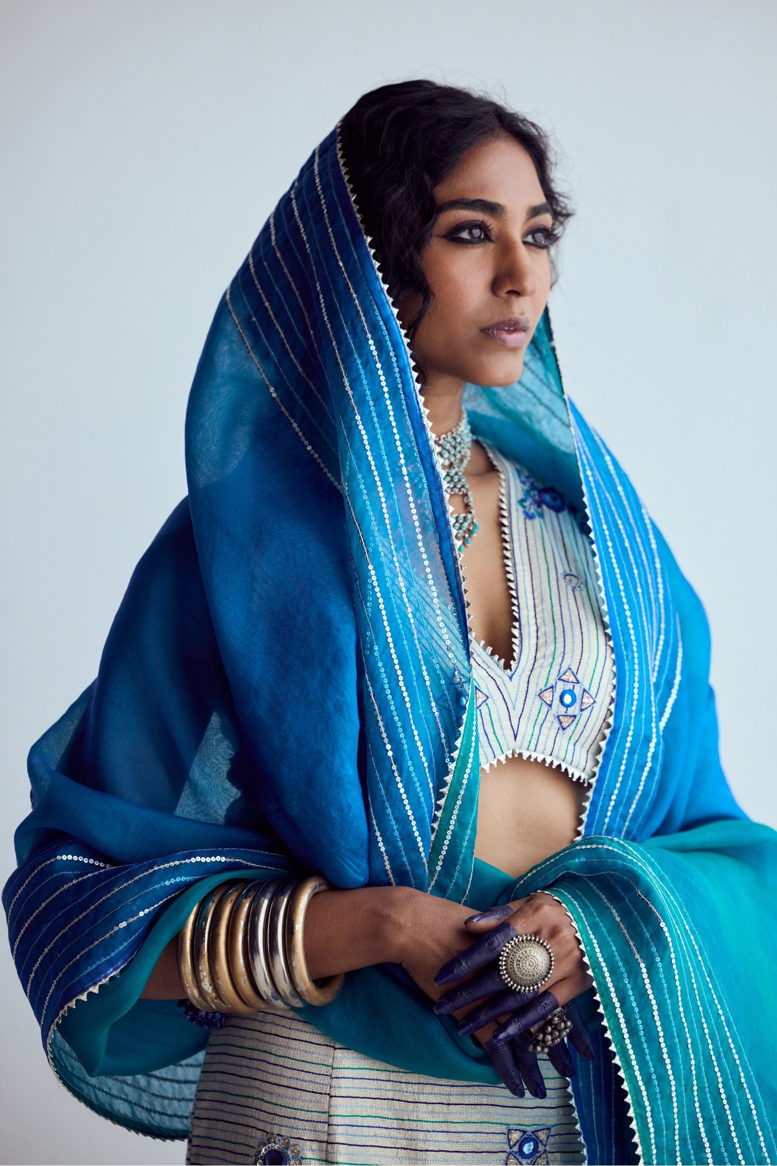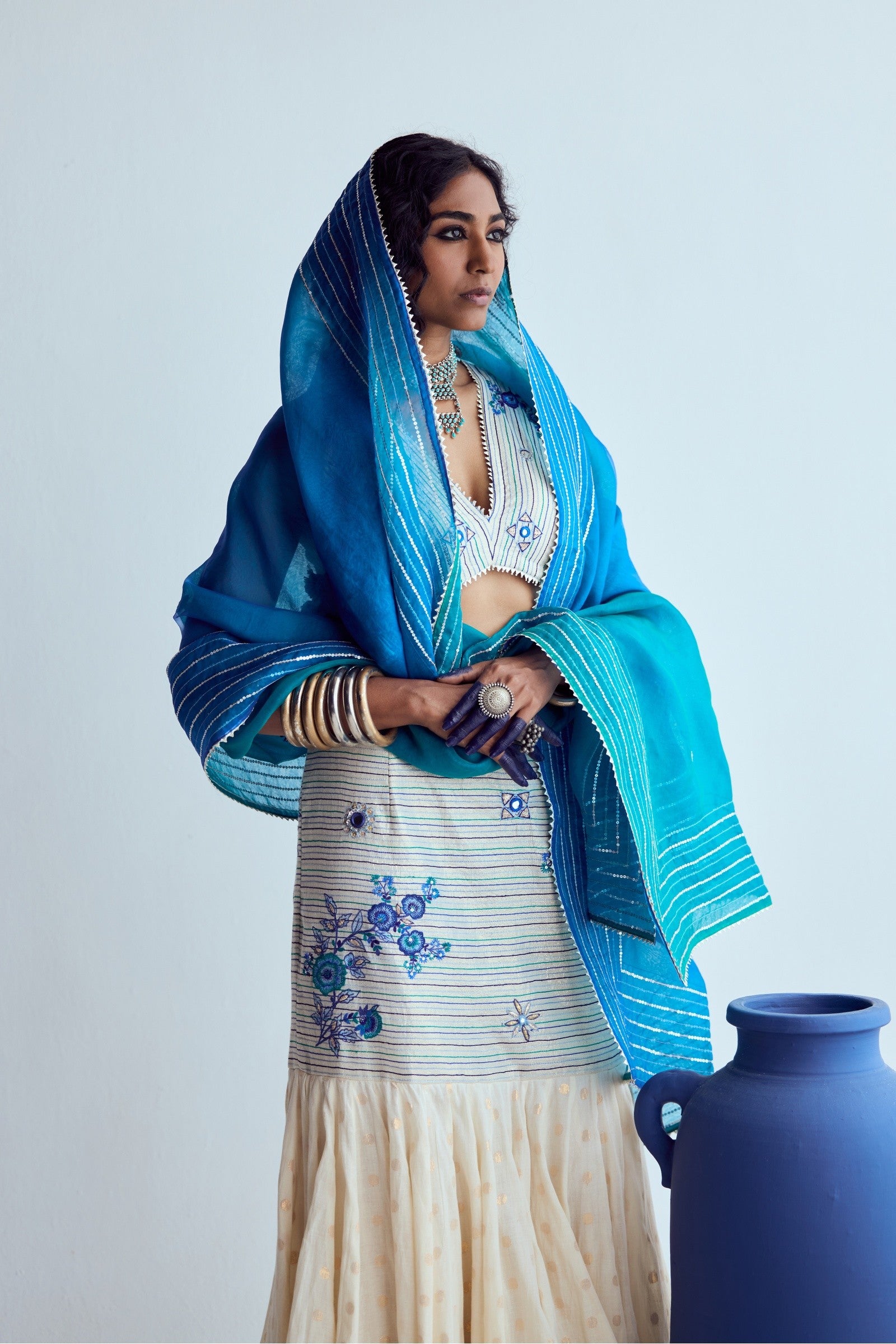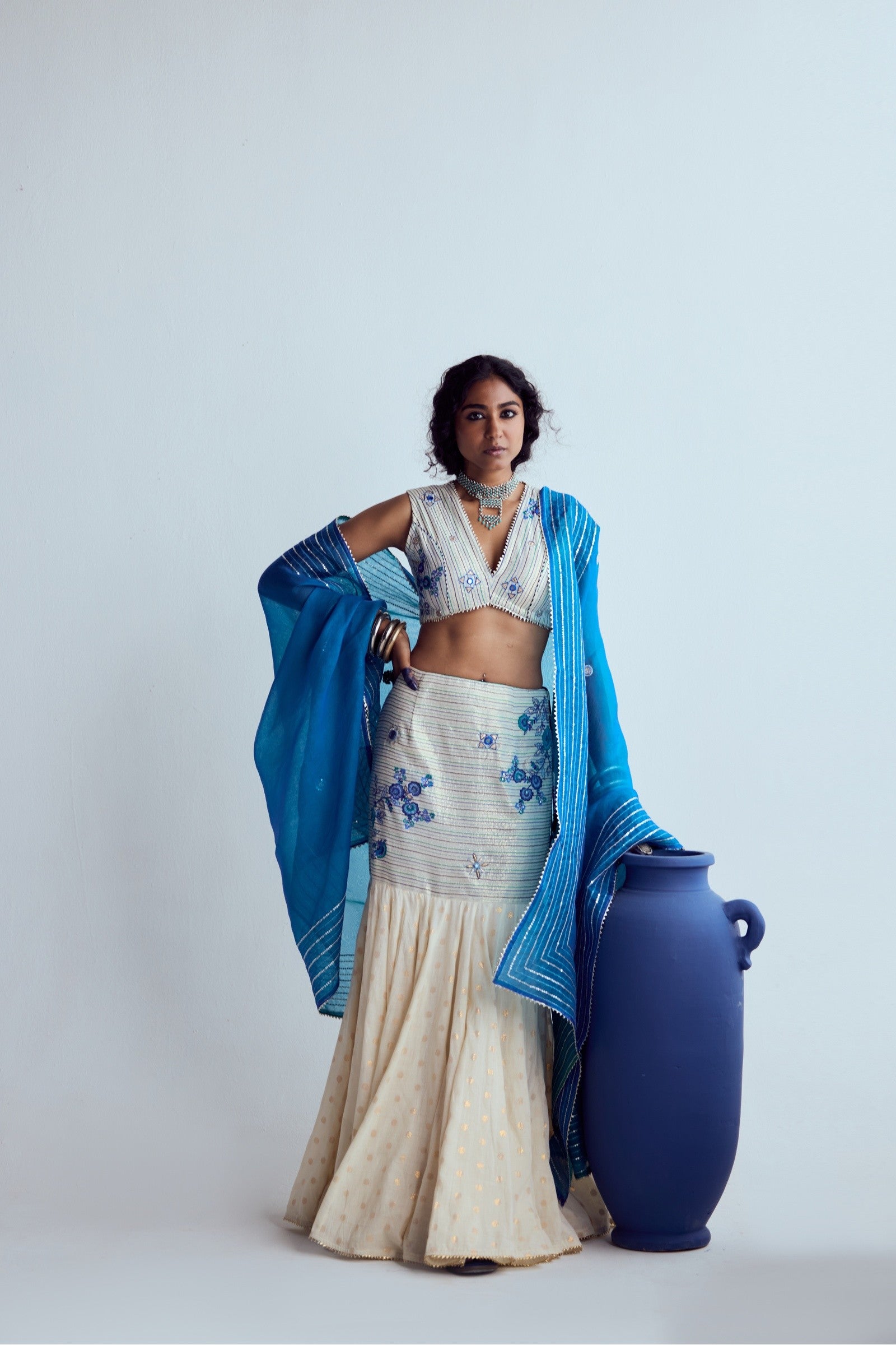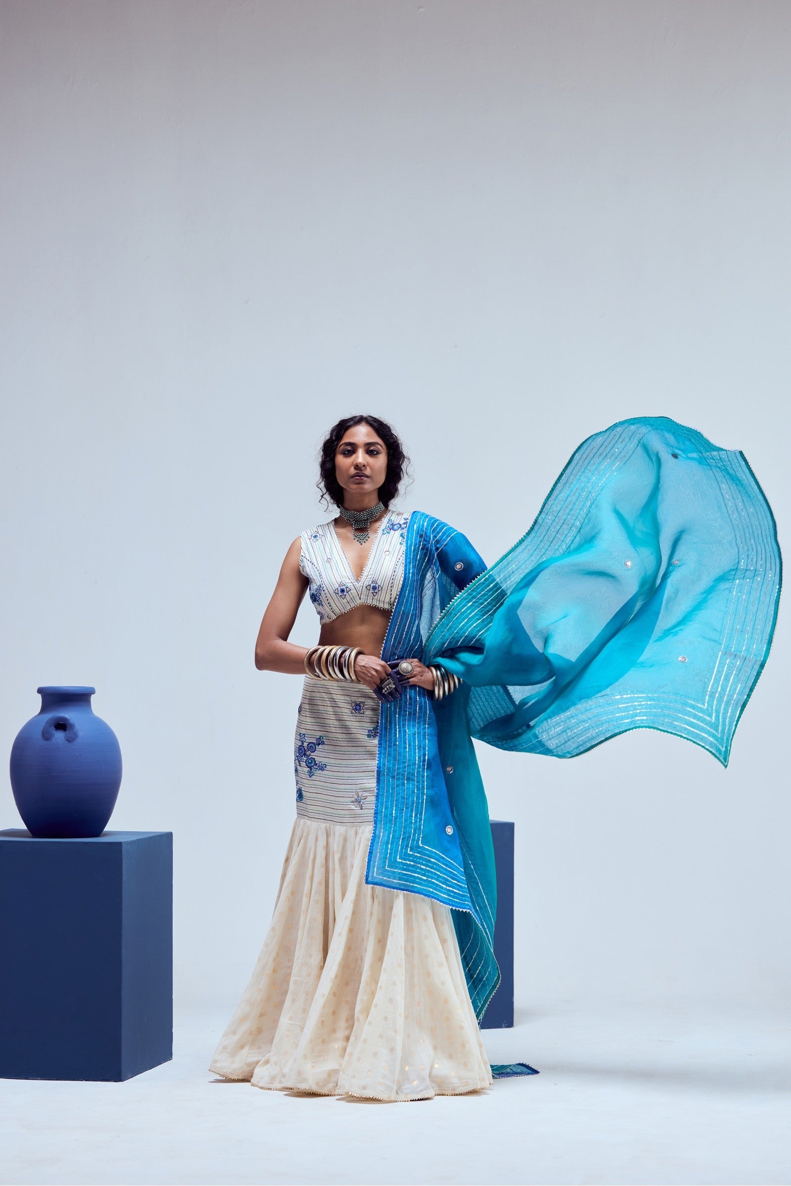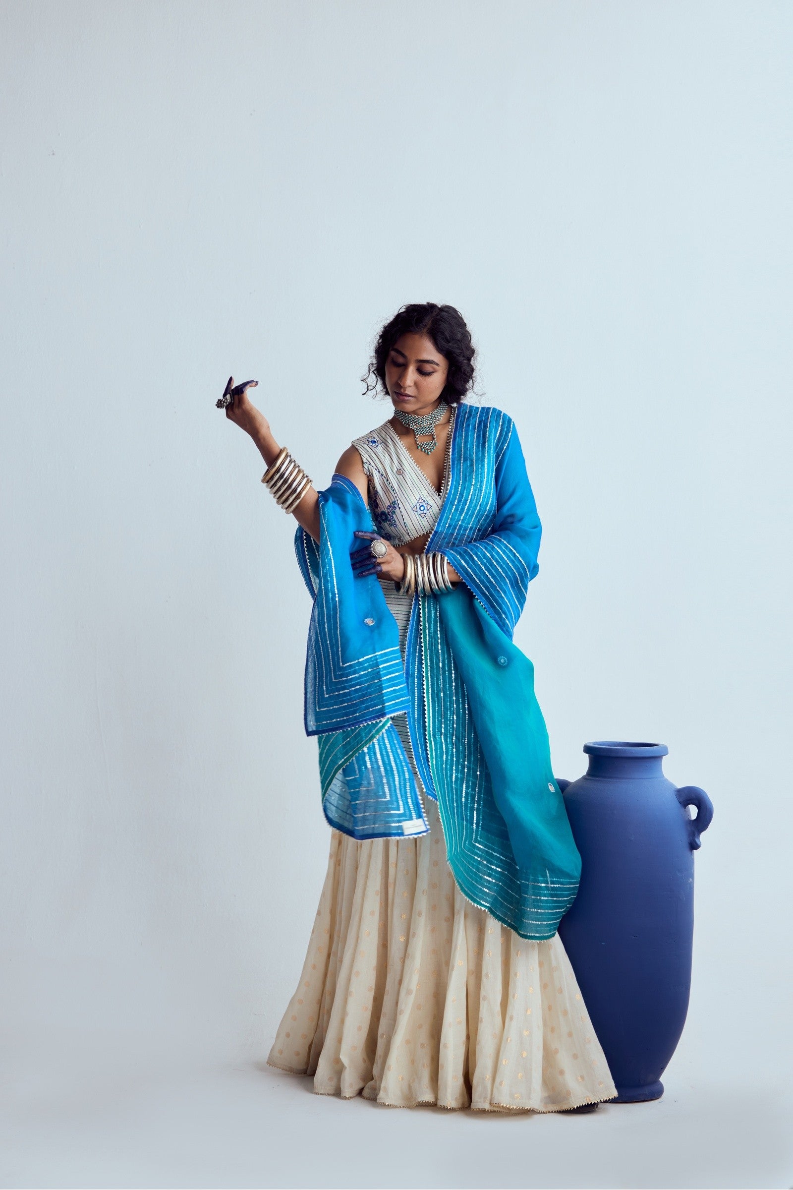 GOLD KORA HALF HALF SKIRT AND BLOUSE