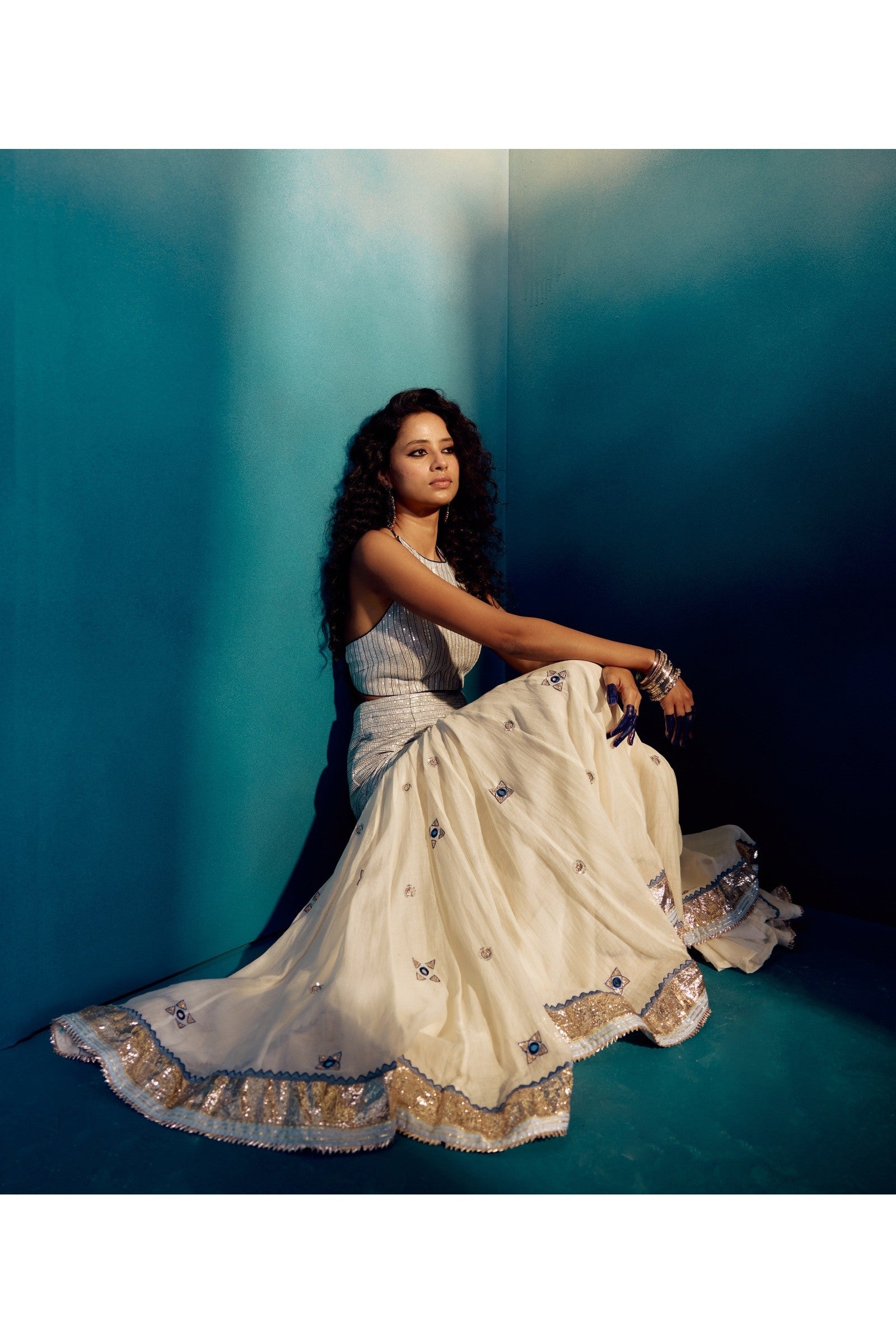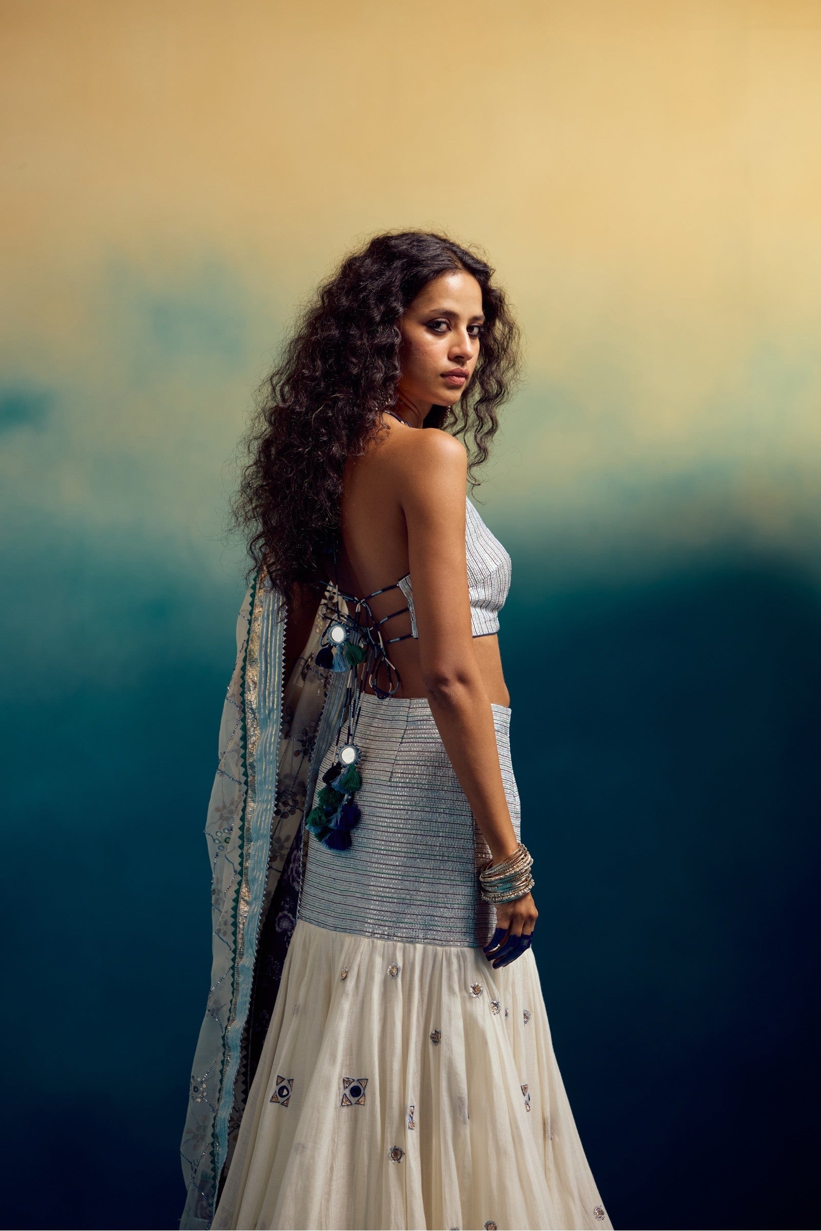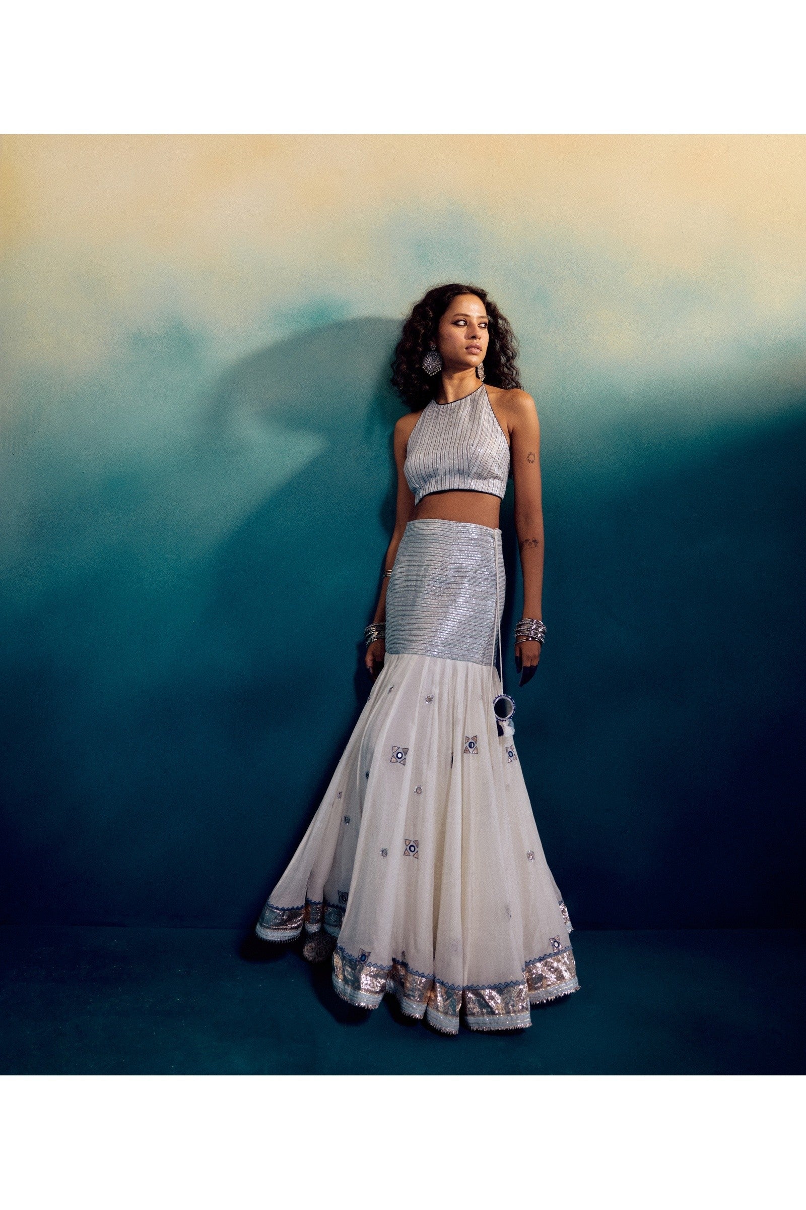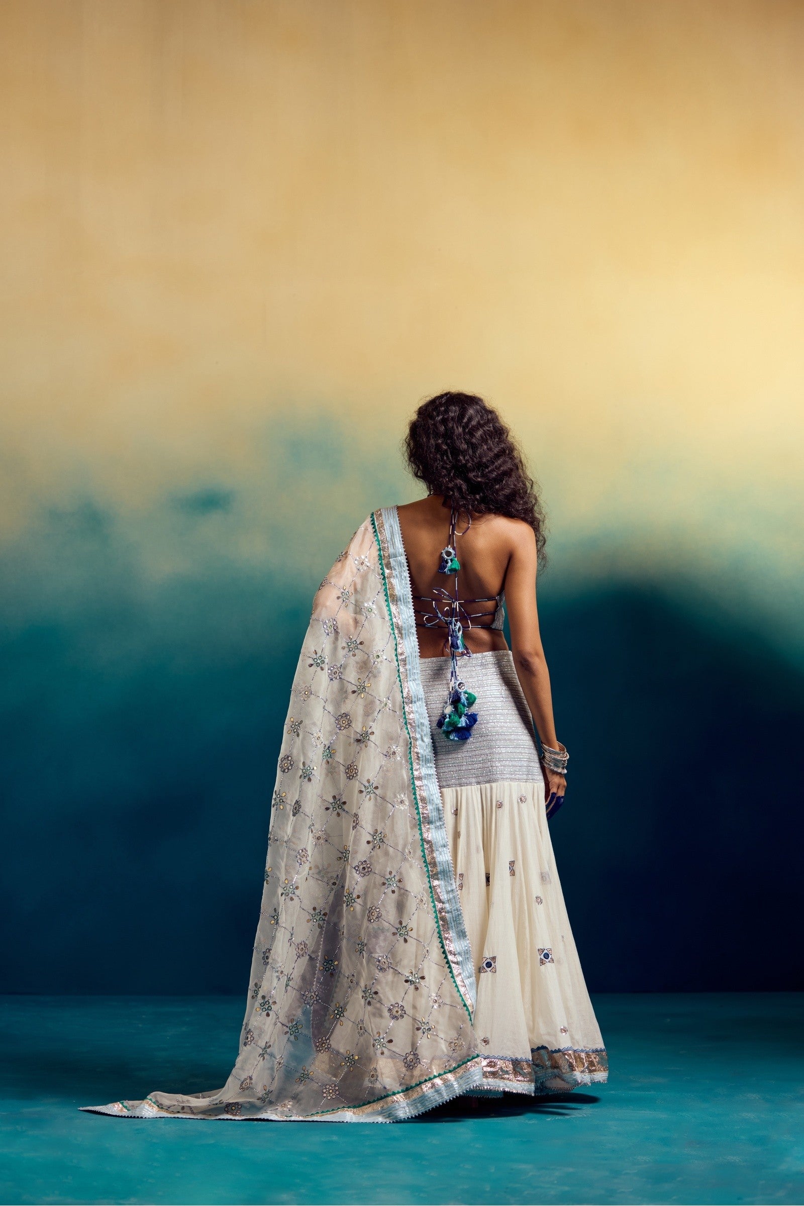 HALTER BLOUSE WITH HALF KALI LEHNGHA