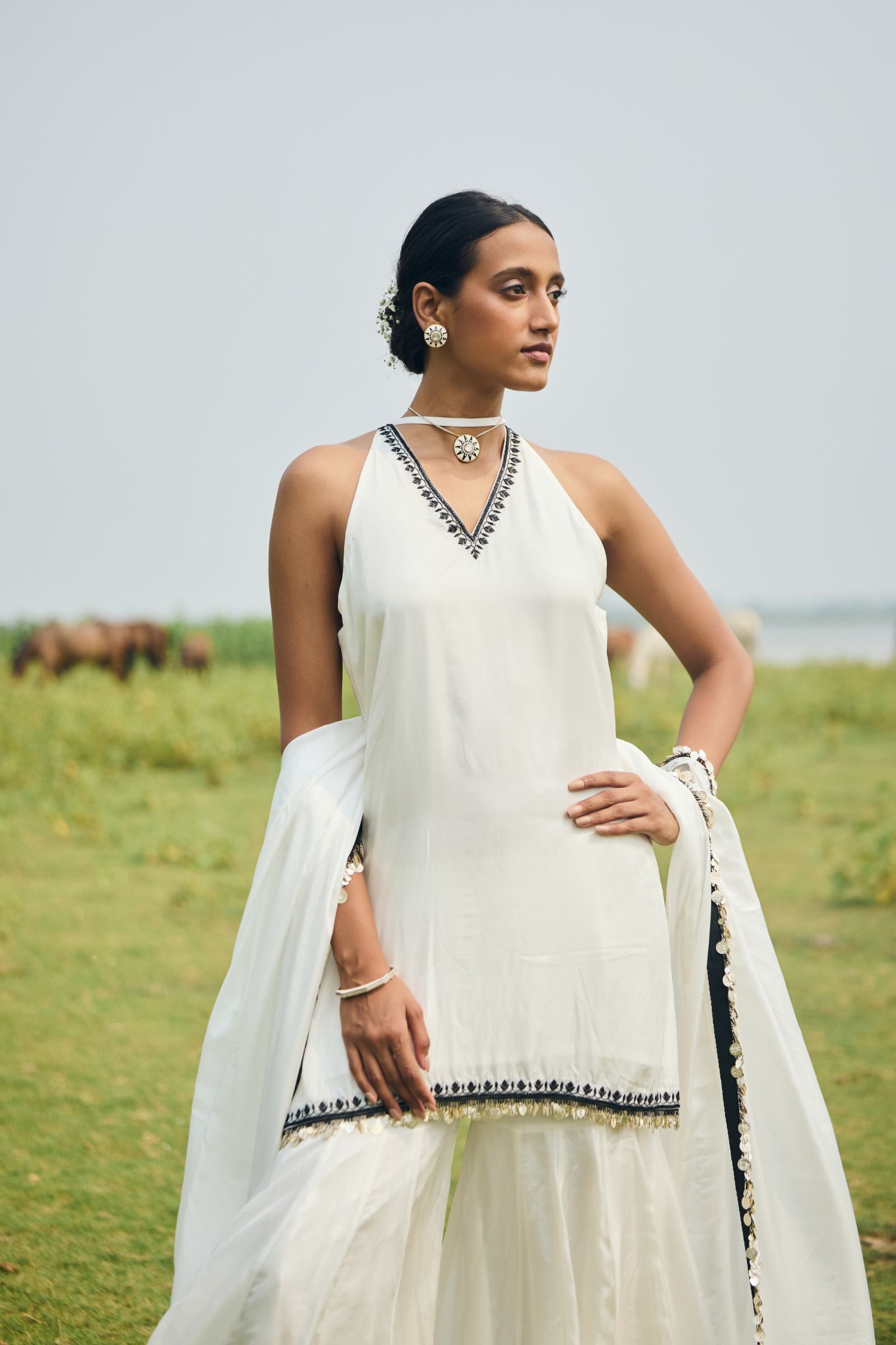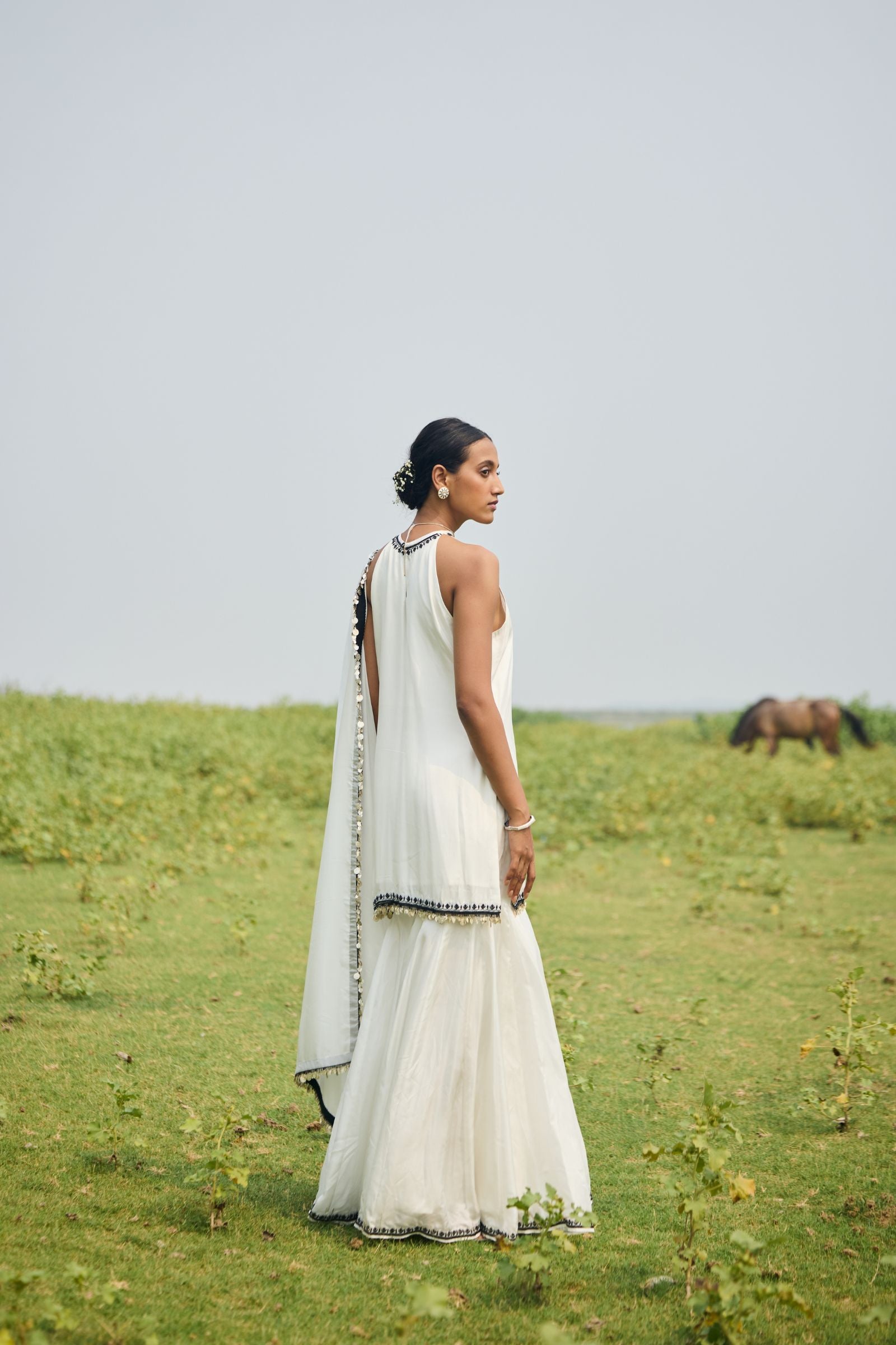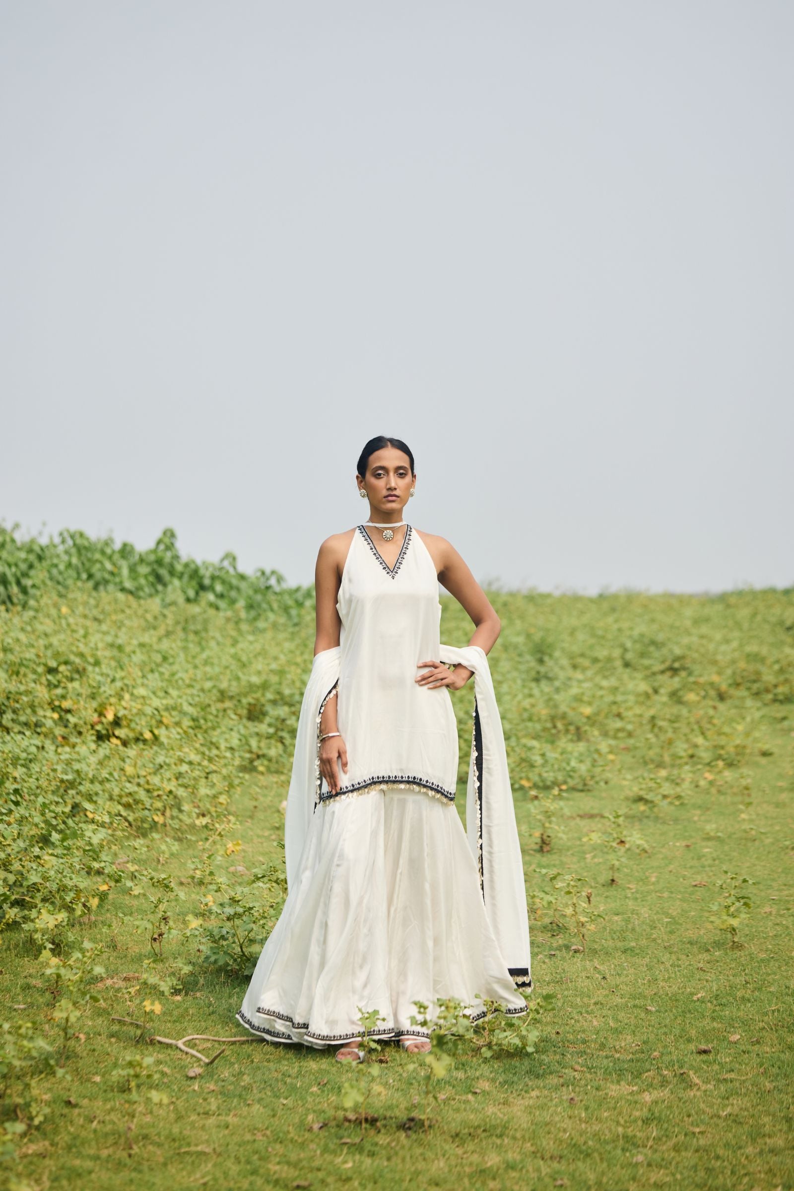 GHARARA PAIRED WITH SHORT KURTA AND DUPATTA