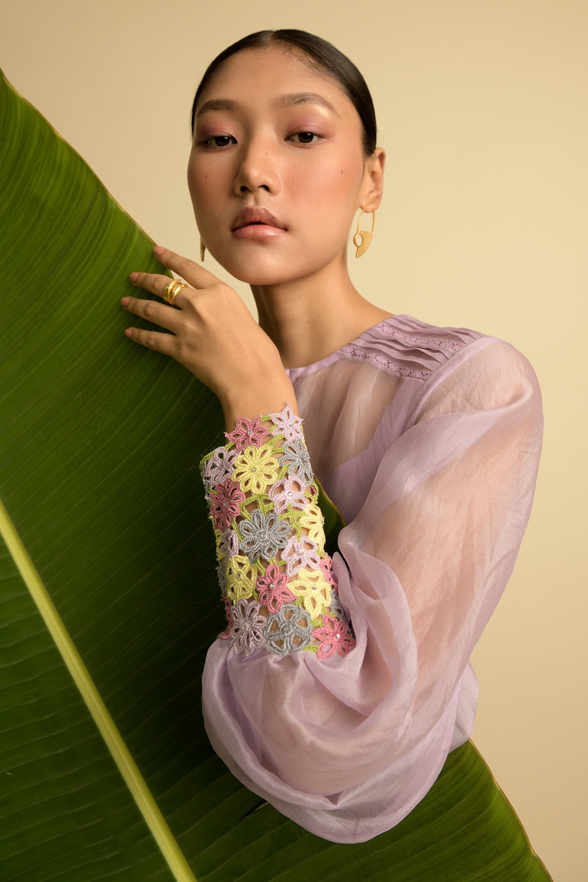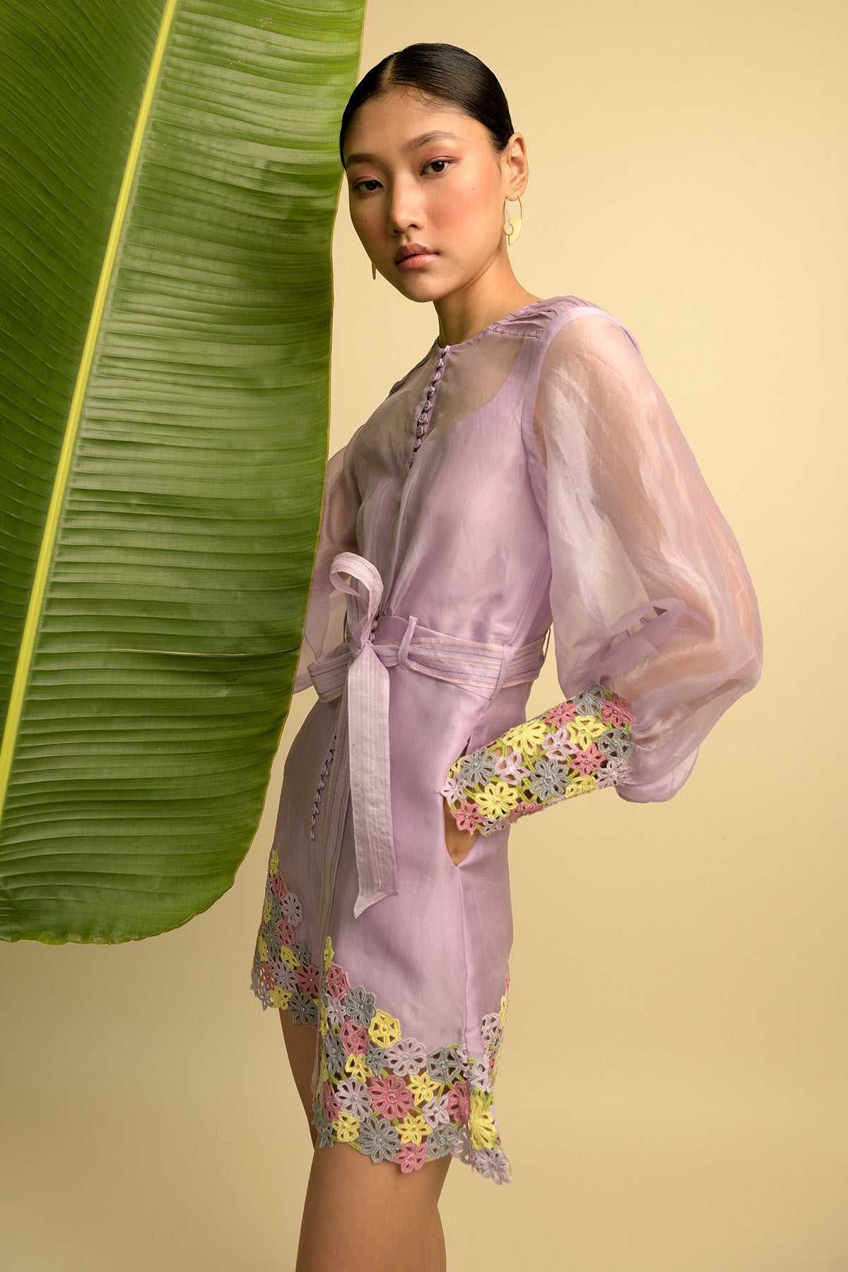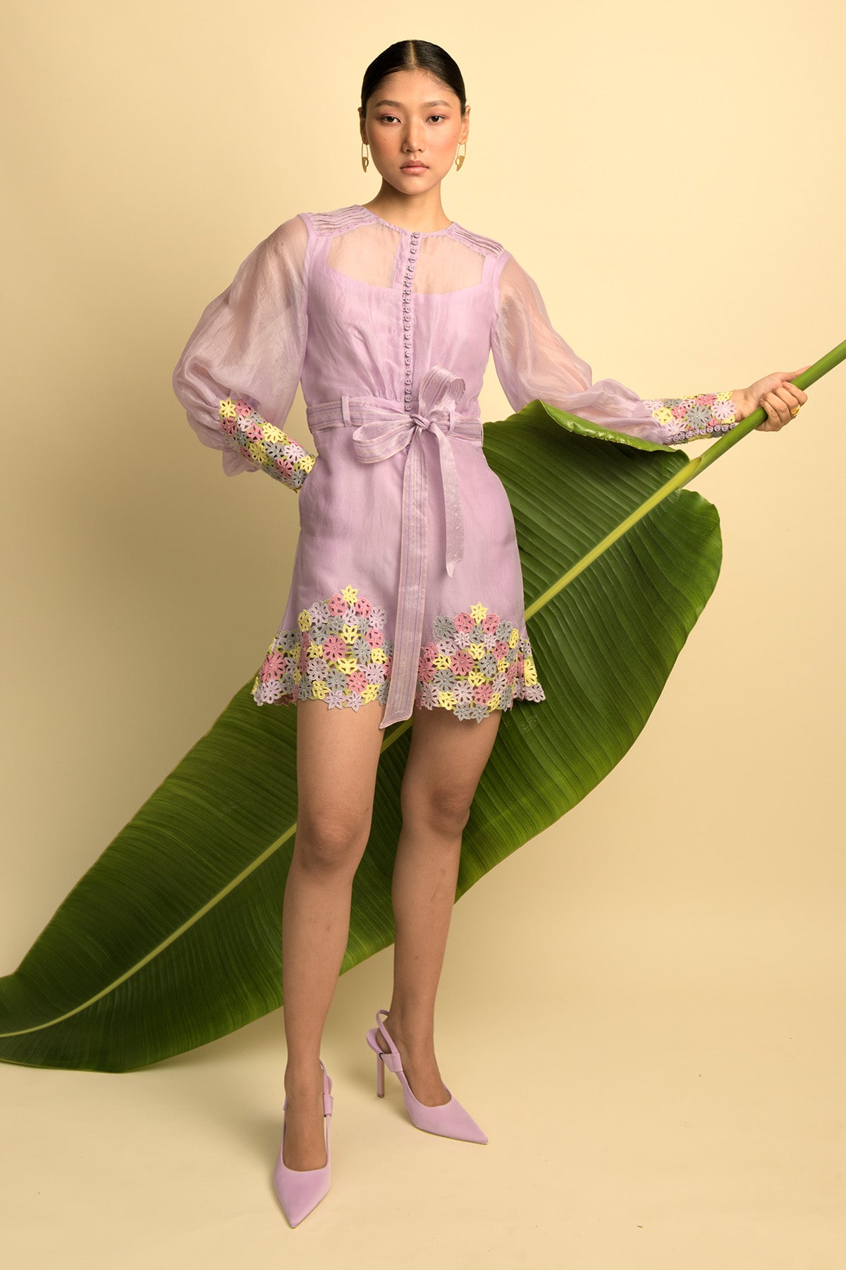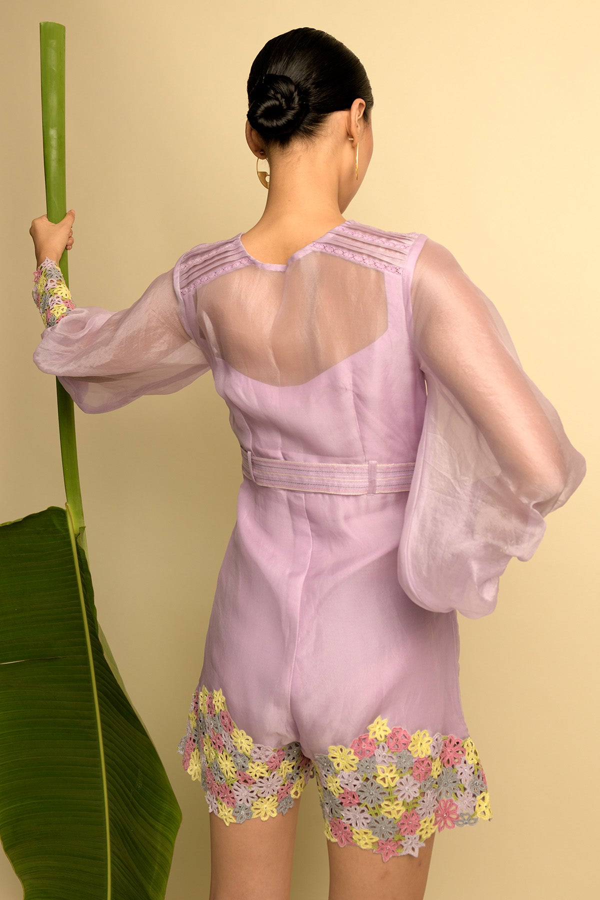 Mauve Organza Playsuit With Multicoloured Michaelmas