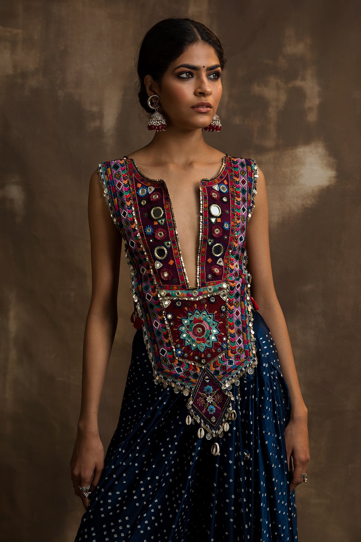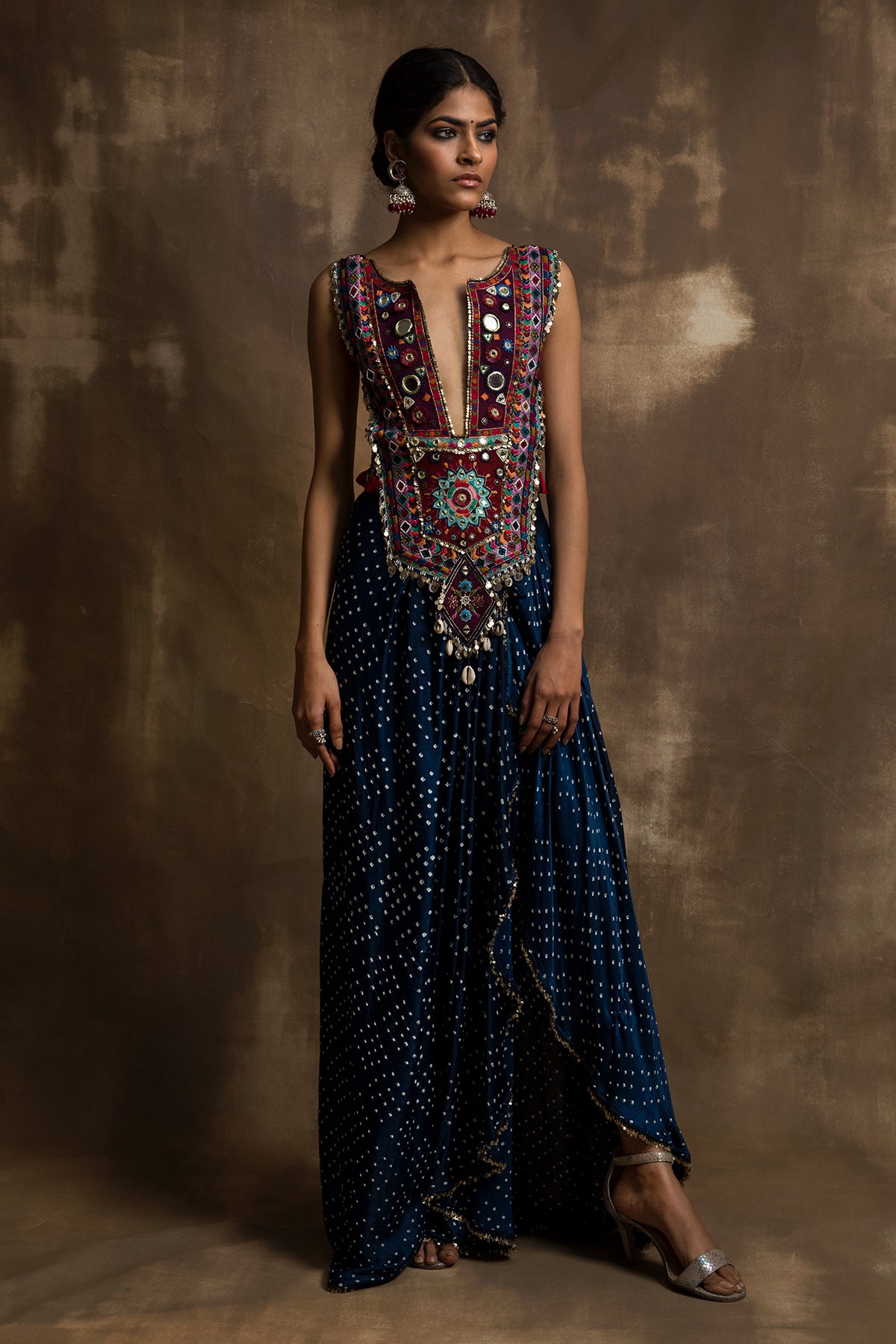 Mustafa Indigo Blue Boho Dhoti with Blouse