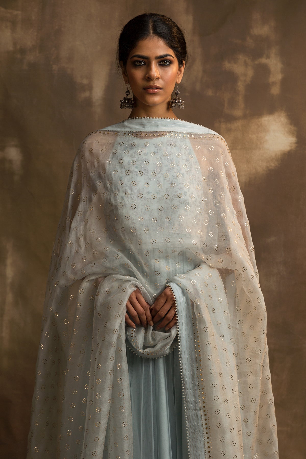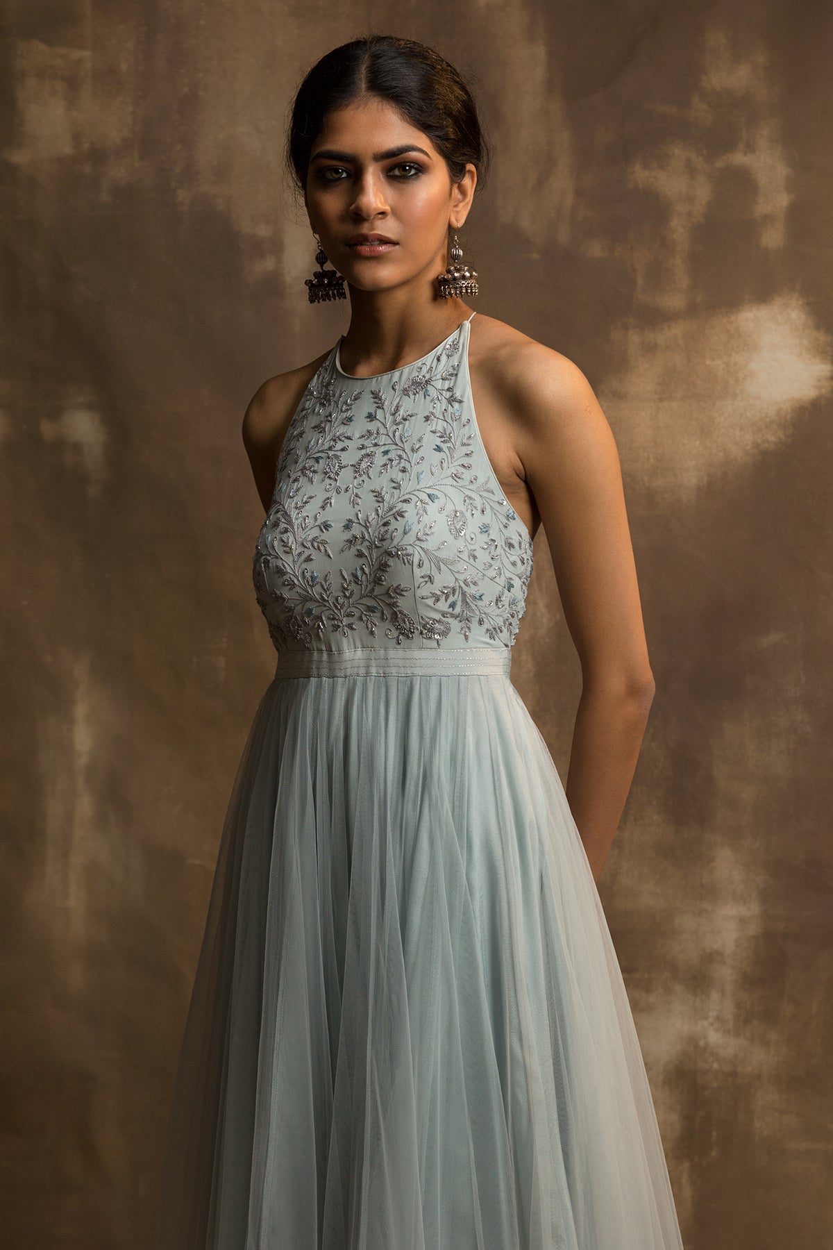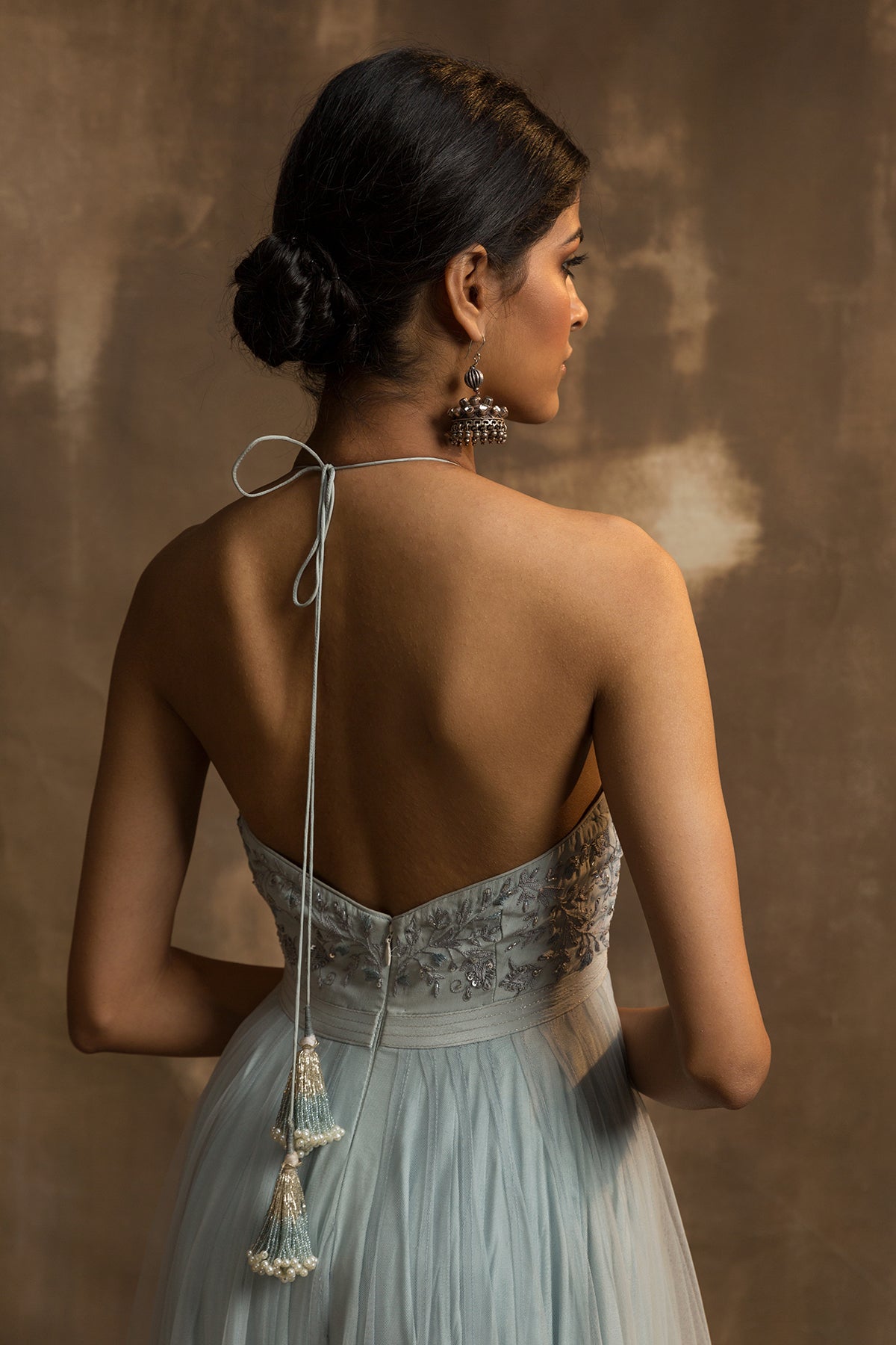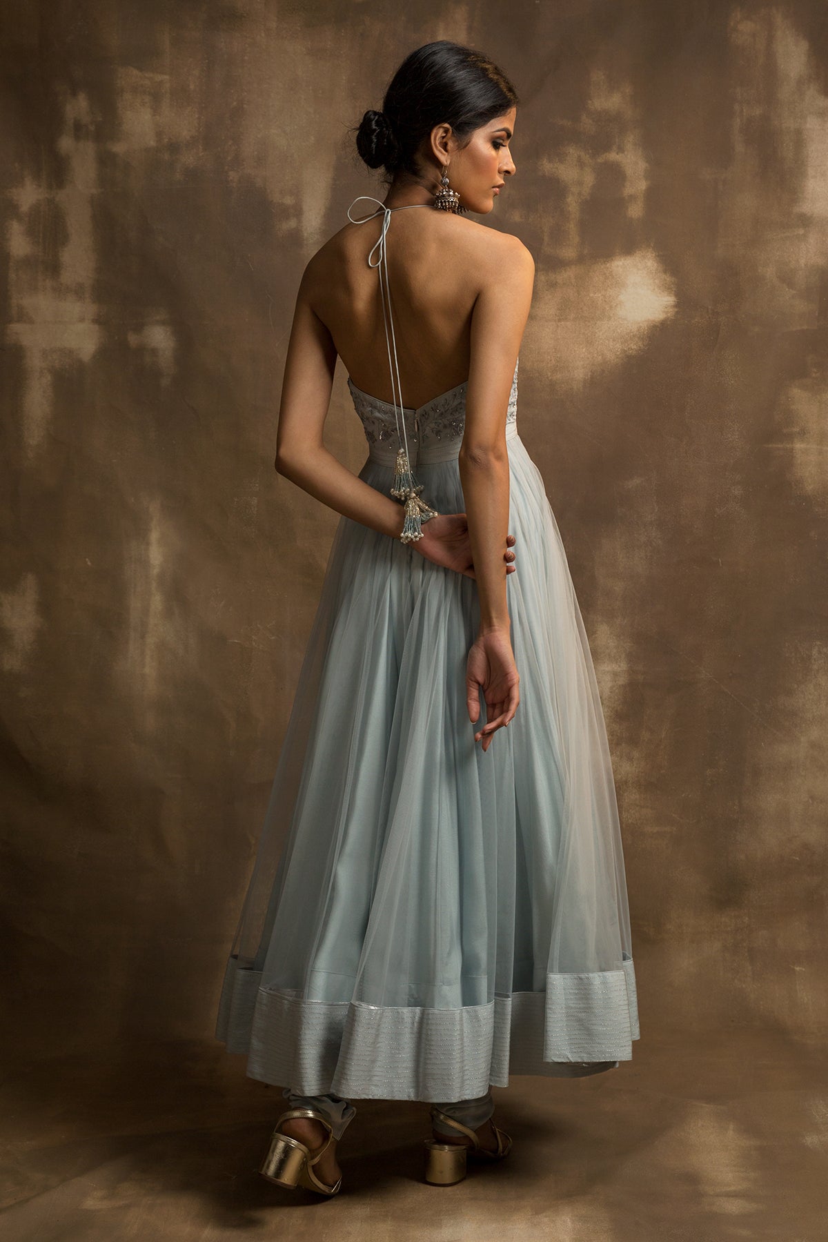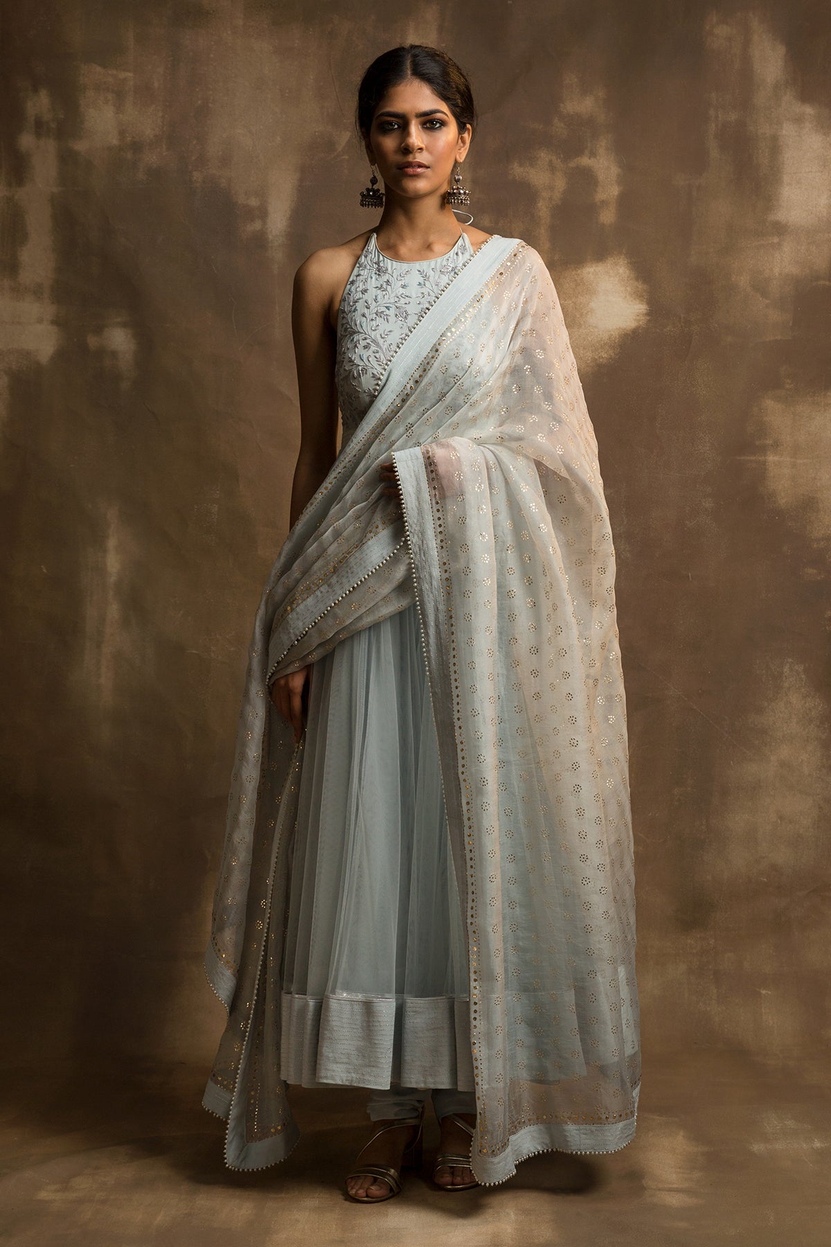 Sharik Powder Blue Halter Neck Anarkali with Dupatta